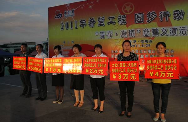 宁夏中钢洗煤有限公司2011年希望工程行动捐...2011年石嘴山市参加高考的学生取得了骄人的成绩,一大批学子将迈进理想的学堂,但其中部分优秀大学新生因家庭贫困而无力负担高额的学费。为帮助即将进入大学的经济困难学生解决实际困难