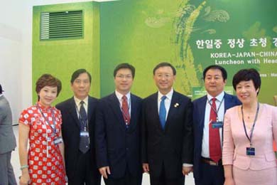 根据会议日程安排,5月30日中午,中国国务院总理温家宝、韩国总统李明博、日本首相鸠山由纪夫与出席中日韩工商峰会的企业家代表共进午餐。