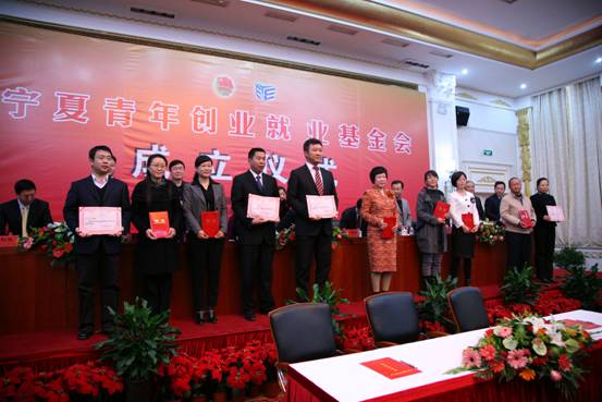 2010年11月3日,由宁夏回族自治区团委创立的宁夏青年创业就业基金会正式成立,宁夏回族自治区党委副书记于革胜在成立仪式上为基金会揭牌,我集团公司总裁李萍作为该基金会第一届理事会理事代表在大会上发言。