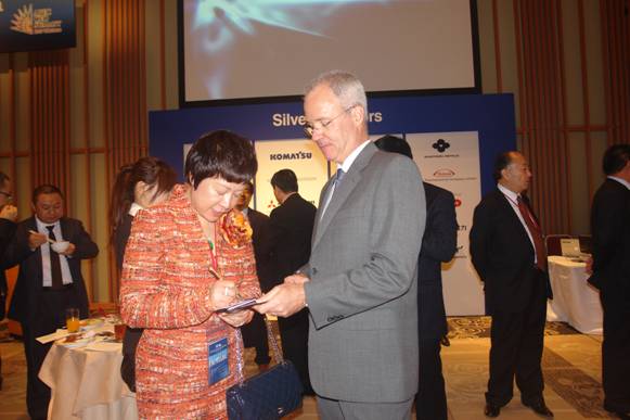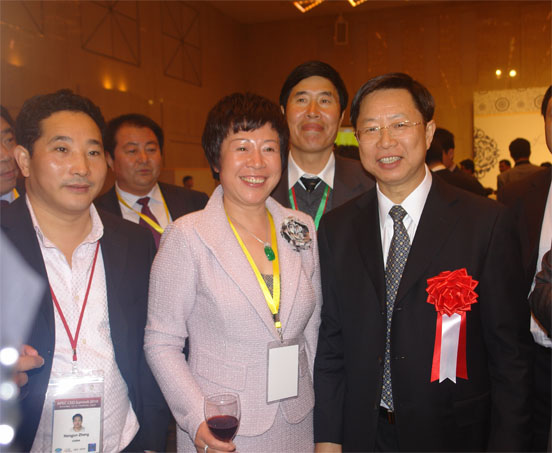 李萍总裁(左)在APEC峰会上与外商交流