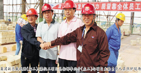 集团公司副总裁赵强、煤化工项目总指挥李正平及该项目总经理赵宝元等参加了筑炉仪式,并为焦炉砌下第一块砖。